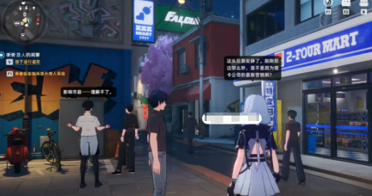 从地图中就能看到有半角街等一系列的坐标,指引着大家去前行。上面会有密密麻麻的标记点,就好像是在晚上闪烁的繁星一样,吸引着玩家去揭开背后的秘密。当角色在迈出第步时走出这一,咱们就可以看到眼前有一个2 - FOUR MART”便利店。