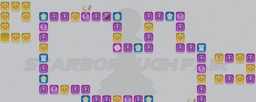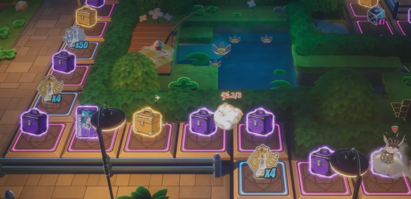 斯卡布罗集市的核心玩法是六边形棋盘。玩家在体验的时候通过掷骰子来决定移动的步数,棋子是沿着固定的路径前进的,通常停在对应格子就能够领取对应的奖励,而棋盘奖励主要分为两种,一种是角色格子,还有一种就是宝箱格子,当玩家落到角色格子的时候,可以直接锁定当期限定的up角色,奖励完全确定,没有任何的随机偏差,如果说玩家这时候直接落到了宝箱格子的话,则能够随机开出S级别的角色、S级别的武器或者是通用的培养材料。