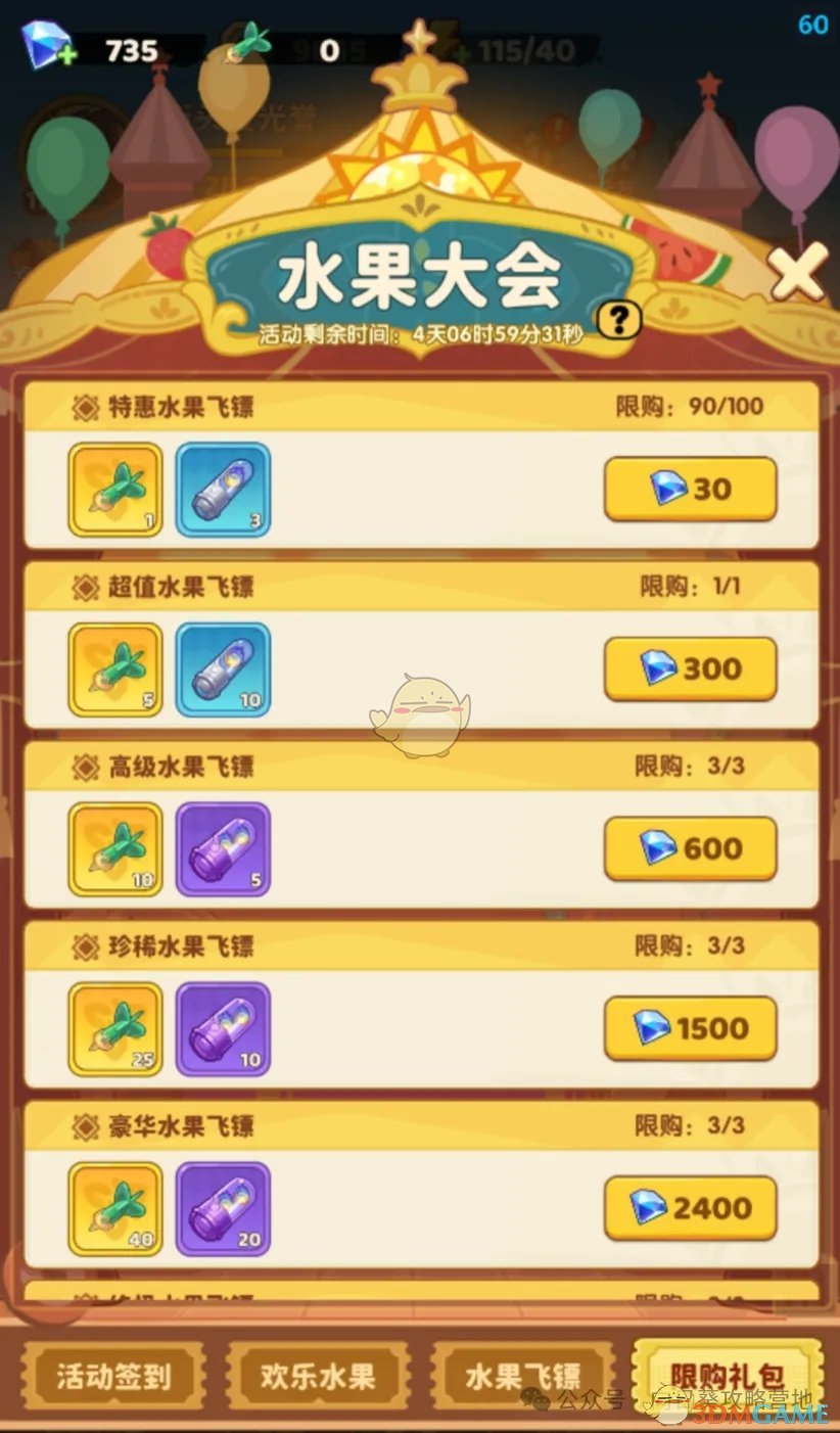 每天登录获得飞镖,尽量每天上线白嫖签到飞镖,飞镖可以获取水果积分以及奖励,积分也比较好