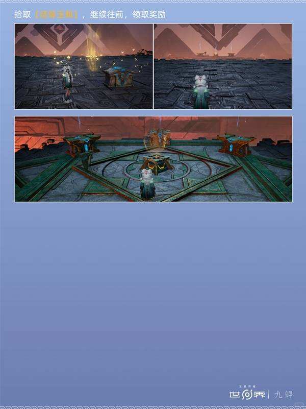 踏上凸起台面后沿固定路径前进,途中需连续激活三处素文固影。待清理完周边小怪,拾取地面垂直道具,进入前方密闭房间,将已获得的钥匙置入对应机关槽位。随后进入多段式机关解谜环节,第一机关执行左旋一次平移两次,第二机关执行锁定一次平移一次右旋三次,第三机关按旋转平移锁定平移锁定平移序列操作。全部完成后即可获取最终任务道具,成功交付溯闻英雄所归任务。