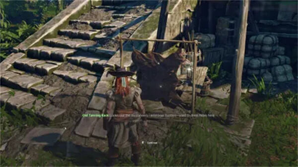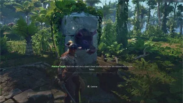 首先在营地外墙外的柱子上,可以看到挂着一头野猪头,玩家需要与附近的练习靶互动以了解更多相关信息。