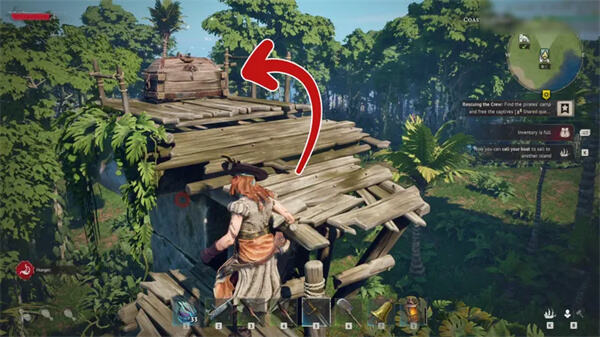 登上建筑顶层,跳上木质平台到制高点,那里你会发现另一个海盗宝箱,里面有几个任务物品。