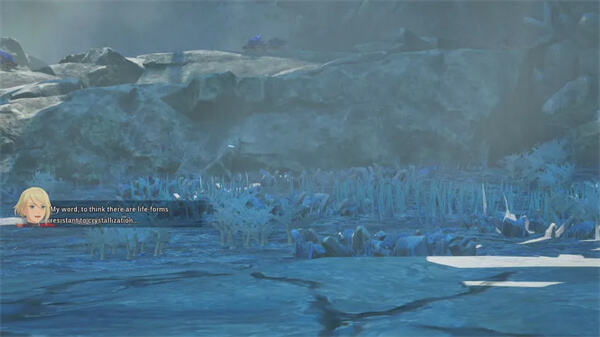 成功进入区域后,请向右侧方向行进,进入一个小型凹陷地带,即可在那里发现水晶蜥蜴的踪迹。