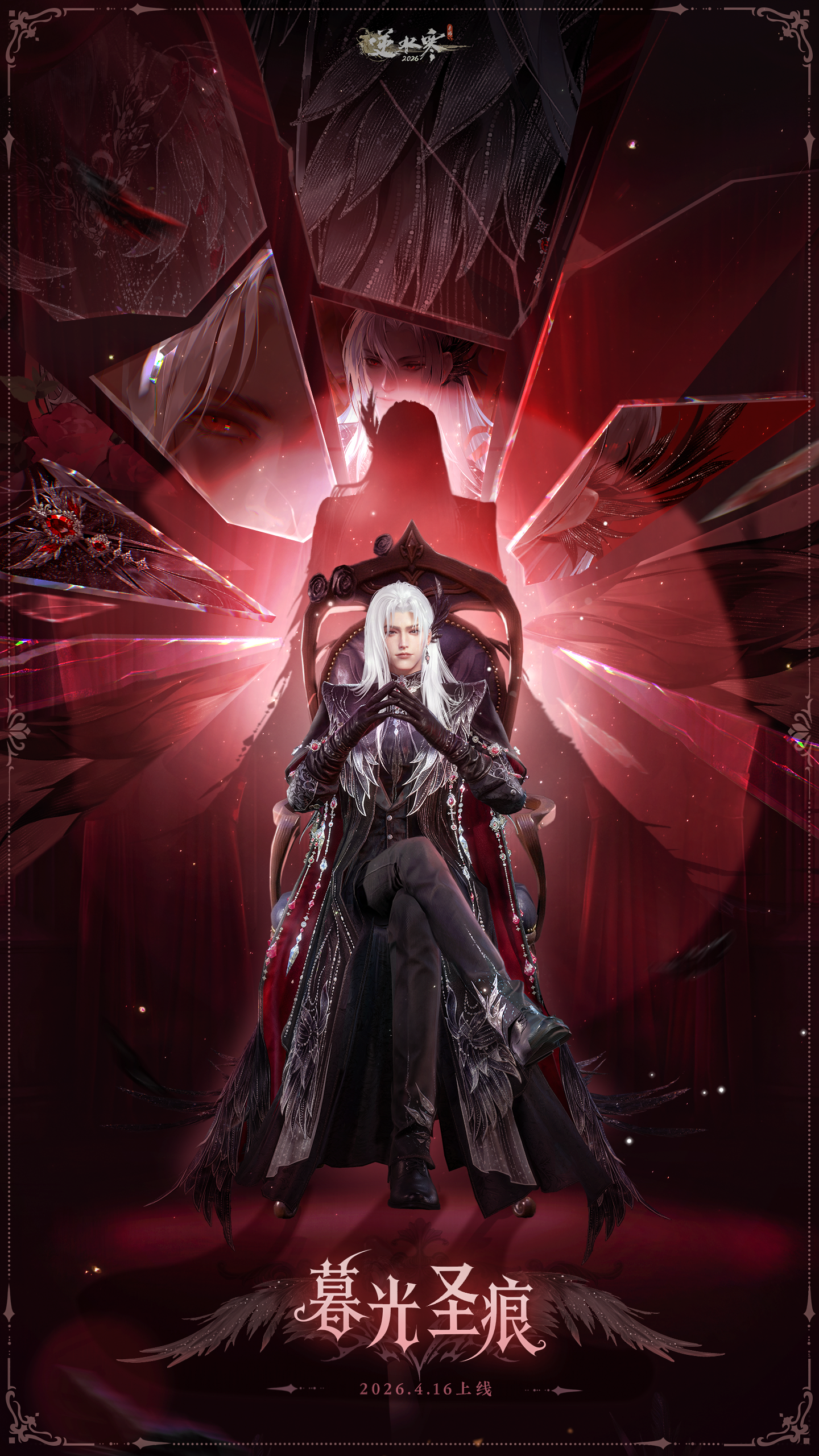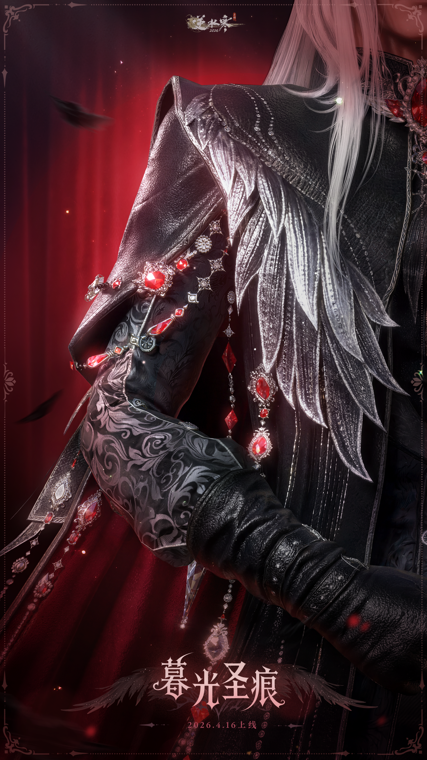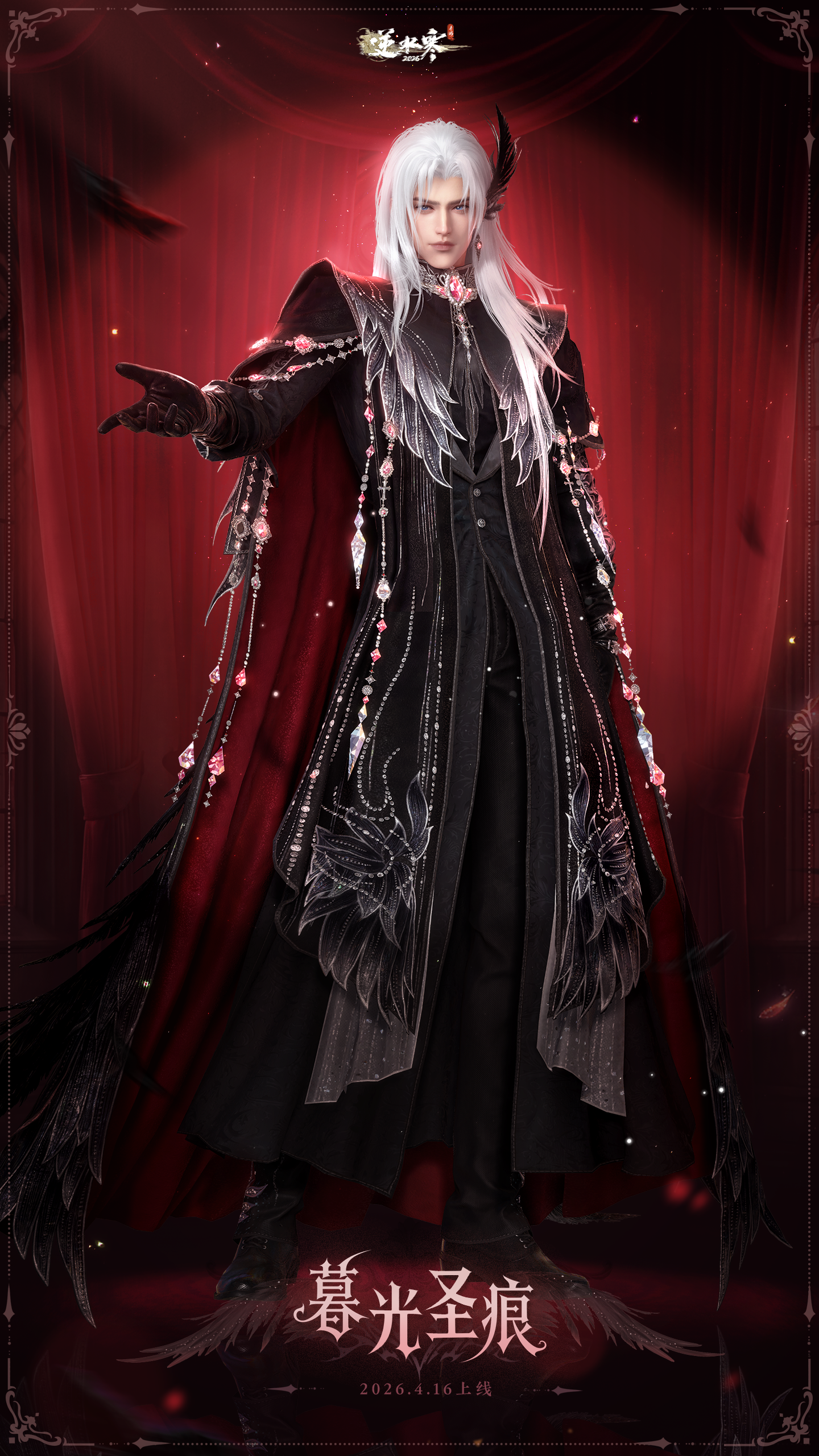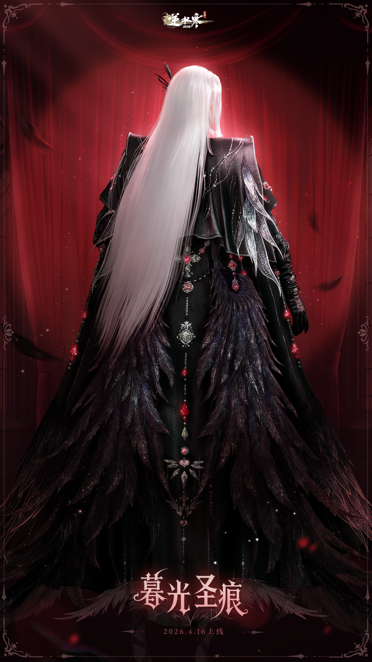 4月16日(星期四)至5月29日0点,逆水寒全新黑天鹅主题时装【暮光圣痕/暮羽栖痕】将限时上架商城,直售价【2880纹玉】,可使用限定纹玉、代金券、半价券。获取时装后,各位同门还将同步解锁黑发头像、单人动作、双人动作以及群龙之首动画。