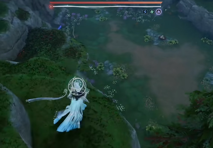走到山谷位置,BOSS 会突然出现,不要停下,继续冲到前方石头拐角