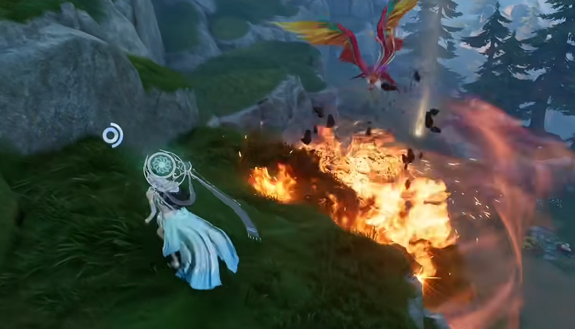 可能全打在山上,可能点燃草坪造成灼烧,极少数情况会直接命中角色