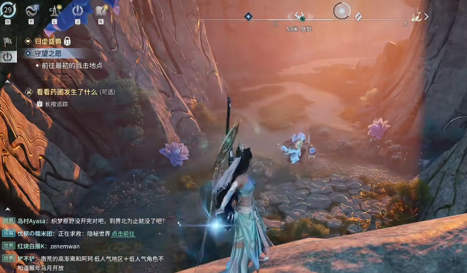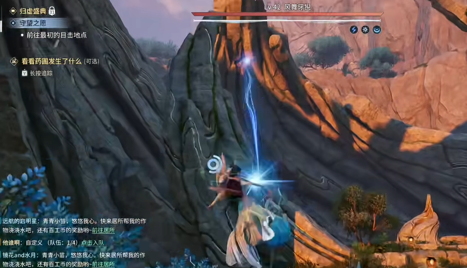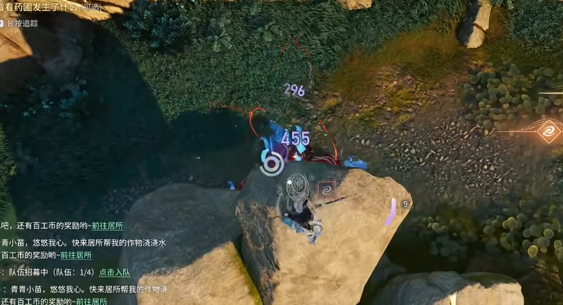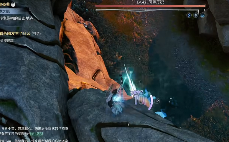 BOSS 先丢带吸附效果的风球,前摇明显,看到风球立刻往下跑,躲到石头背面。