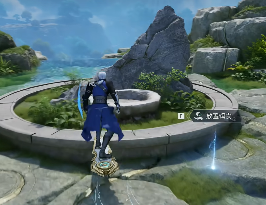 在召唤石台按 F 放入「丰云大饼」,召唤汉雷鸣角兽。