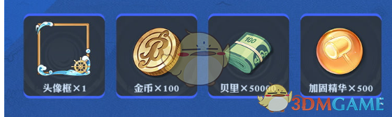 头像框*1、金币*100、贝里*50000、加固精华*500