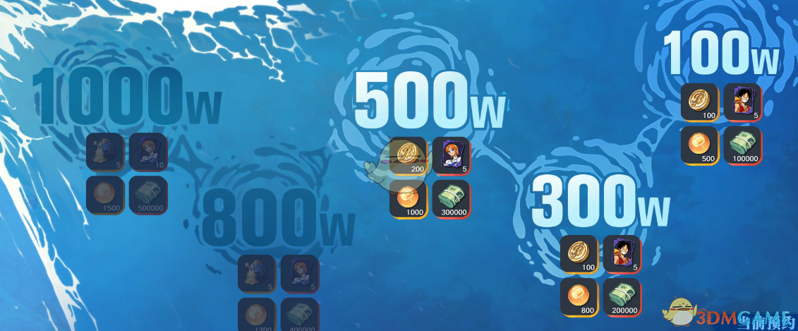金币*100、路飞*5、加固精华*500、贝里*100000