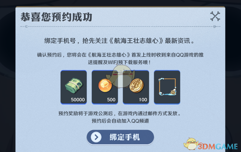 5、最后当玩家绑定手机和账号信息后,还可以在公测后领取预约奖励