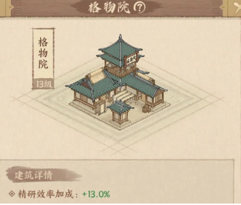 这是一个需要重点升级的建筑,格物院(升级可以提高一些课业精研效率)。