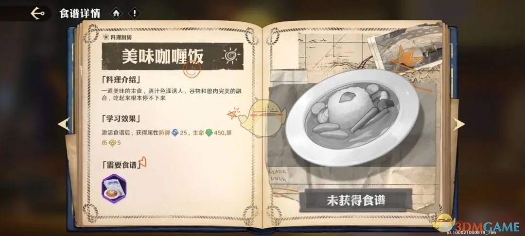 美味咖喱饭不着急可以等前面几个做完之后,再来解锁这个食谱;