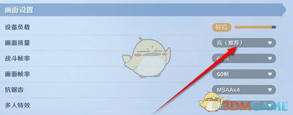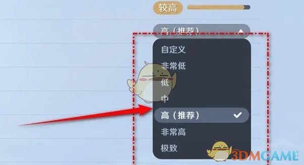 4、最后在弹出的画面设置选项中,选择想要设置的画面质量即可,比较推荐大家设置官方推荐画质。