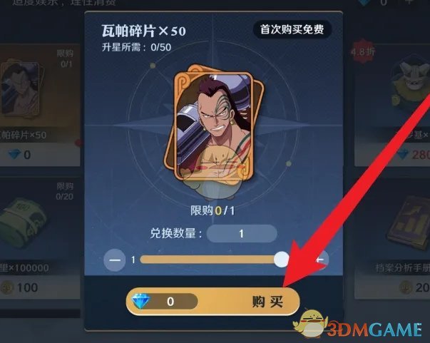 4、最后在购买页面,点击下方的购买,即可获得瓦帕碎片;