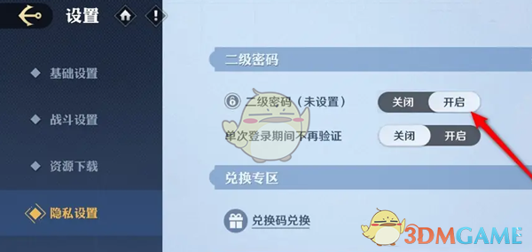 4、完成二级密码的设置后,将该功能开启即可完成二级密码的设置操作;