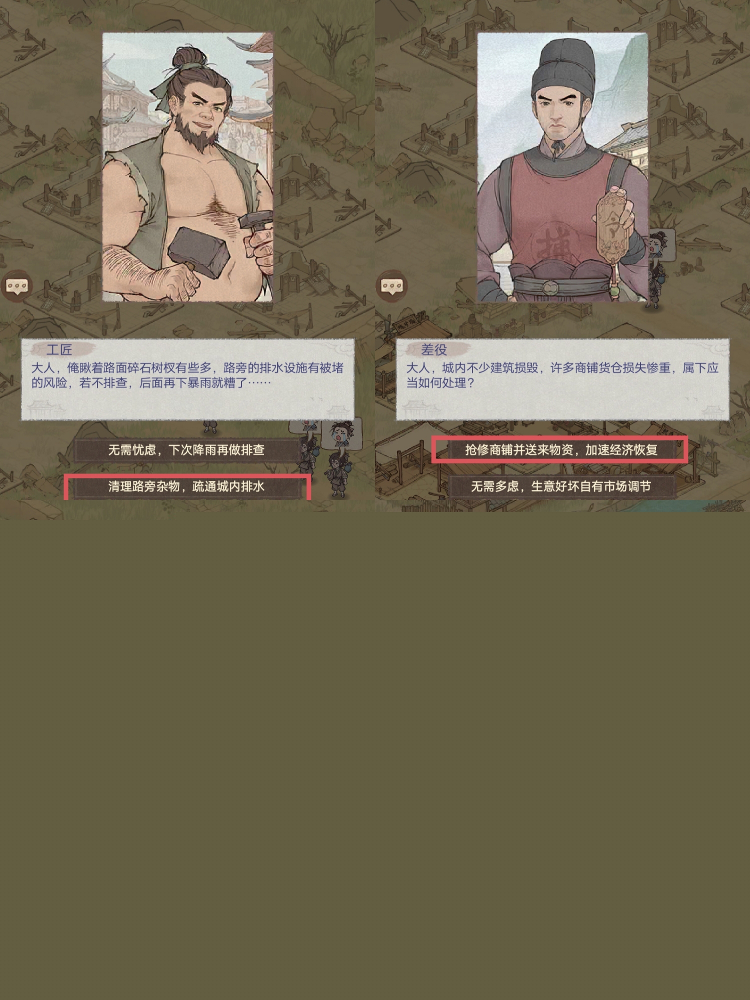 2、抢修商铺并送来物资,加速经济恢复
