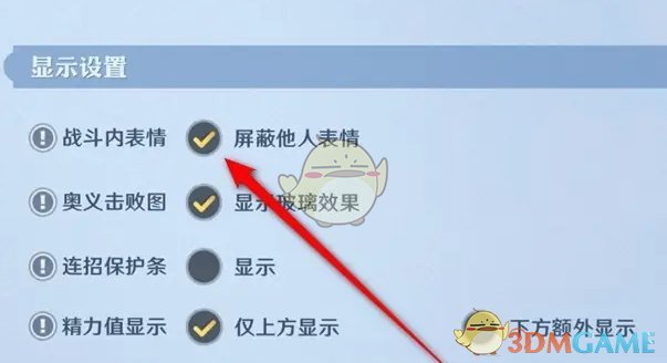 答:前往战斗设置,找到战斗内表情,勾选屏蔽他人表情就可以完成设置。