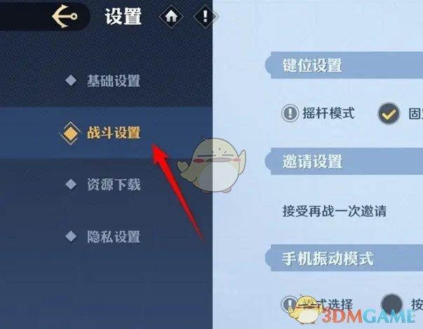 2、接着在设置页面,点击左侧菜单栏的战斗设置选项;
