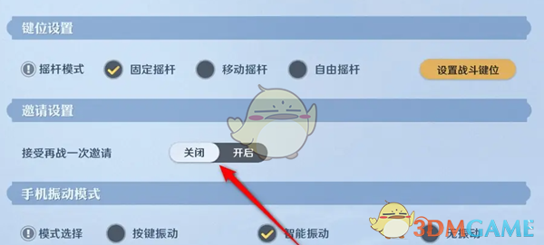 答:游戏设置-战斗设置-接受再战一次邀请,将功能选择开启或者关闭进行设置即可。