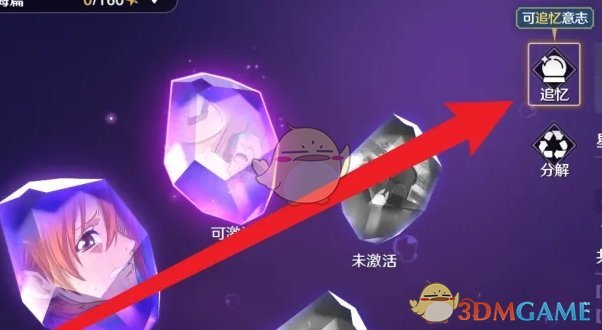 3、然后在意志水晶页面,点击右上角的追忆选项;