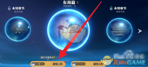 4、最后在追忆页面,可以选择章节,然后消耗资源追忆1次/5次即可获得水晶。