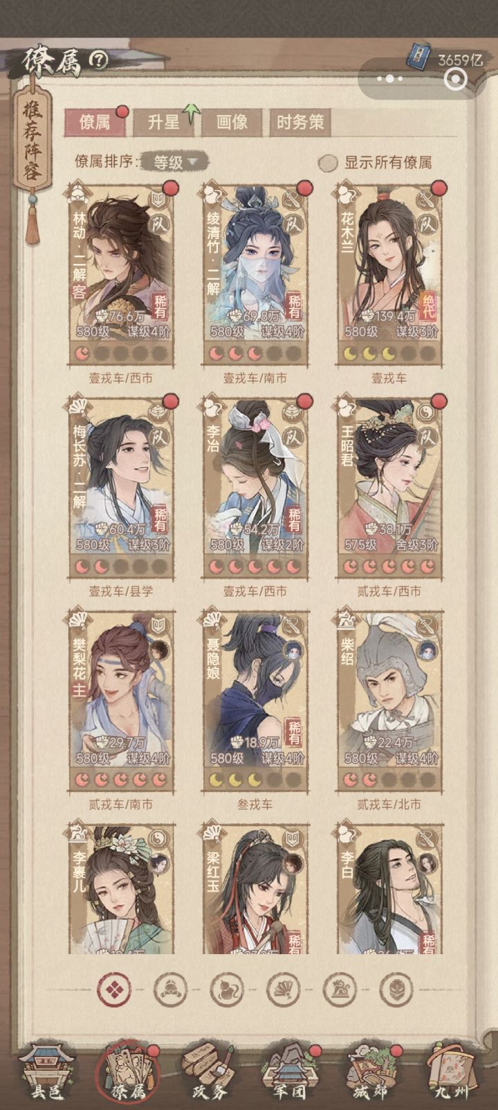 僚属品质从高到低:绝代>稀有>普通,核心原则是“优先培养绝代僚属,过渡僚属不浪费资源”,具体优先级如下: