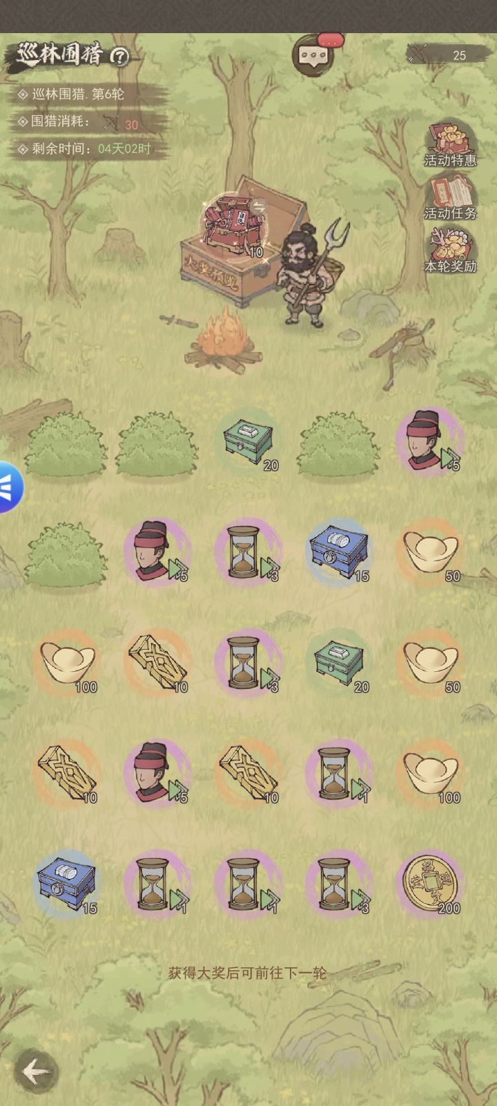 成就任务:完成阶段性目标(比如围猎到第几轮),能额外拿100个左右,记得时不时看看任务进度,别漏了。