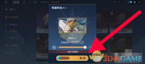 3、触发英雄传说的详情弹框,点击购买,消费360钻石即可购买获得。