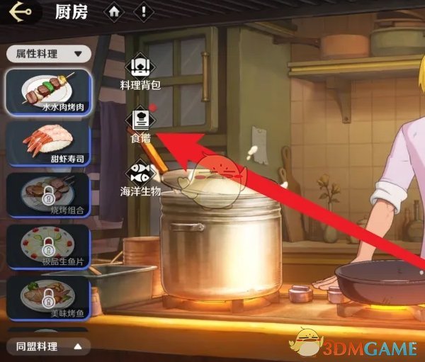 1、首先我们在游戏主页,点击左侧的菜单栏,选择厨房进入;