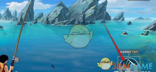3、在钓鱼页面点击右下角的抛竿图标,等待鱼儿咬钩再地阿娇右下角的收线。
