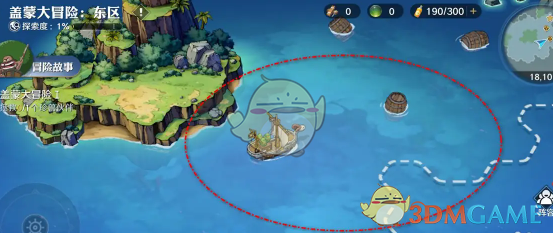 1、首先我们需要进入到冒险区域,在冒险海域东区,移动船只捡拾海上的漂浮物。