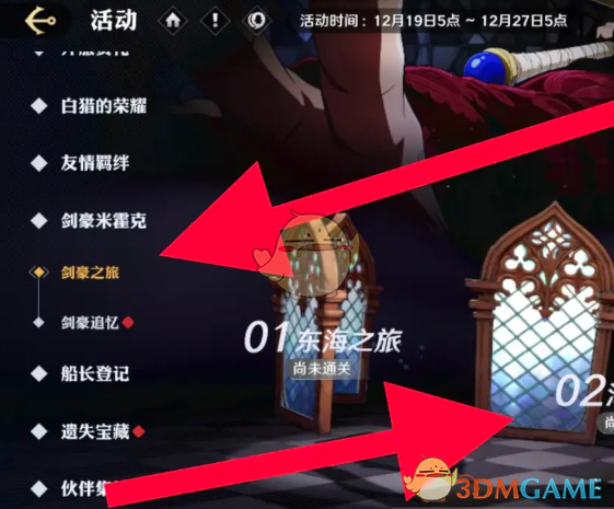 1、首先我们需要进入到游戏页面,点击活动,选择剑豪之旅。
