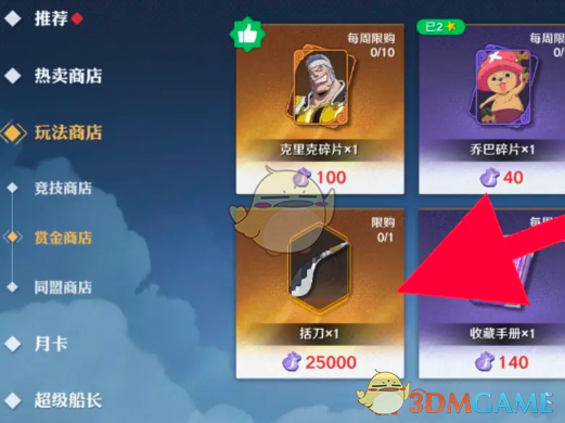 括刀是航海王壮志雄心游戏中的一个装备武器,在冒险过程中可能会遇到,需要砍伐一些特定的物品,那么括刀要如何获取呢?当前还是有小伙伴不清楚,其实只需要在商城购买获得,为了解答疑惑,下面小编整理了《航海王壮志雄心》括刀获取方法介绍,一起看看吧。