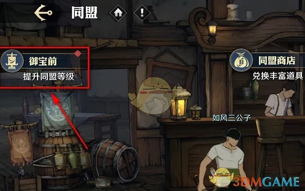 1、首先我们进入同盟玩法,然后点击左侧的御宝前玩法前往;