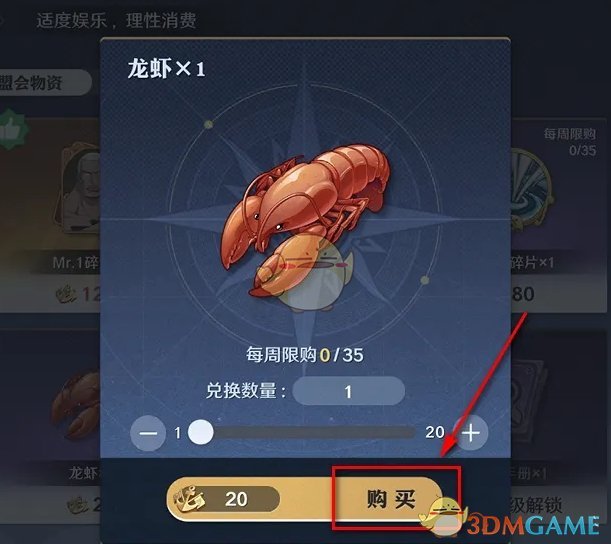 3、最后只需要消耗货币,即可购买获得龙虾道具了;