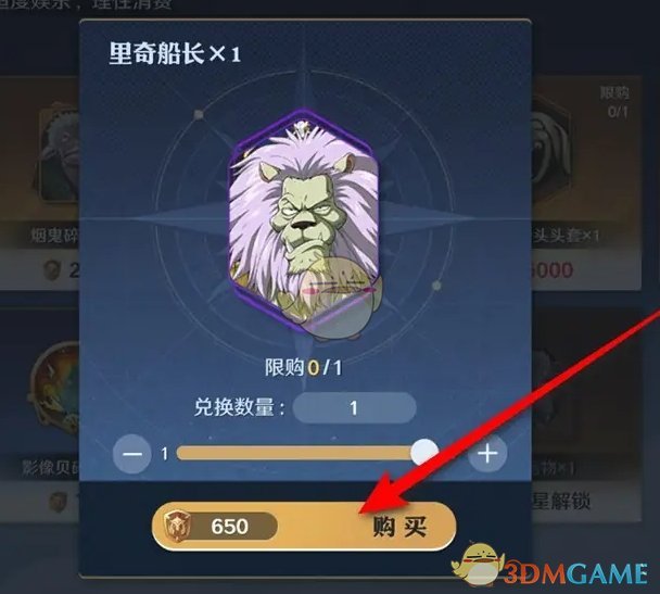 3、最后花费650个竞技货币,点击购买即可获得里奇船长了;