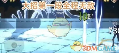 接着乱A等敌人脱身,敌人脱身后,先拉开身位,等1.5秒。对面无敌时间过去之后,直接用5A突脸,无脑开大招,又是6秒抓取!大招结束后可以无脑接技能,我们直接接2技能雷兽抓取4秒!1技能继续远距离补伤害!消耗雷点位移过去乱A几下,此时冻冻贝的冷却又好了!直接冻住!又是4秒!