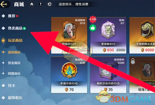 2、在热卖商店页面,点击右侧物品栏的收藏手册。