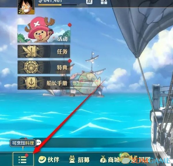 1、首先我们在游戏主页,点击左下角的三横线菜单前往;