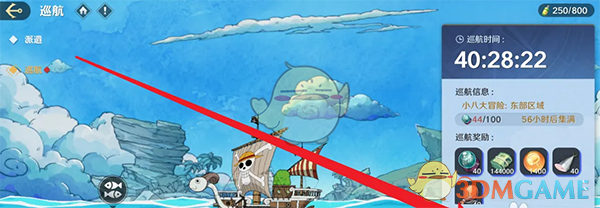 答:在冒险玩法内找到巡航,点击领取即可获得巡航奖励。