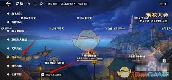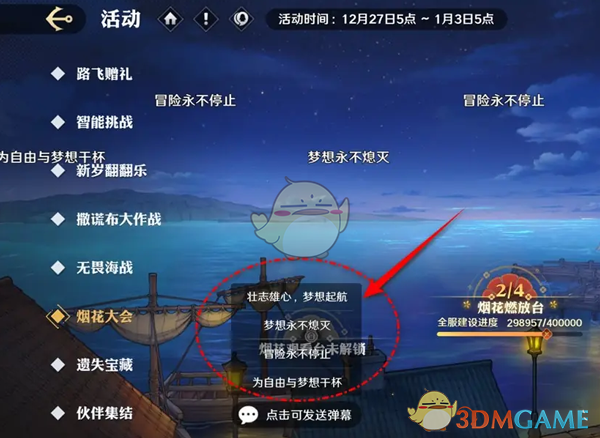 航海王壮志雄心怎么在烟花大会活动内发送弹幕?