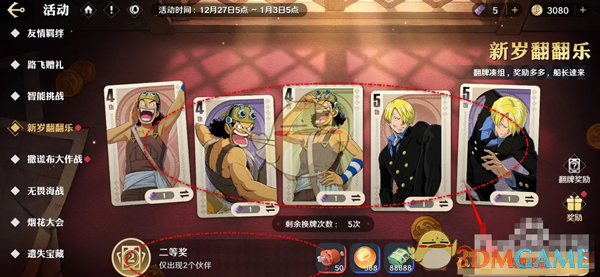 航海王壮志雄心新岁翻翻乐翻牌奖励怎么领取?