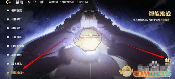 2、进入活动玩法后,点击左侧的智能挑战,继续点击右侧的奖励;