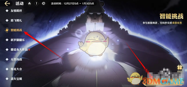答:前往活动页面,找到智能挑战活动,点击开始挑战,选择关卡配置阵容后即可开始活动玩法。