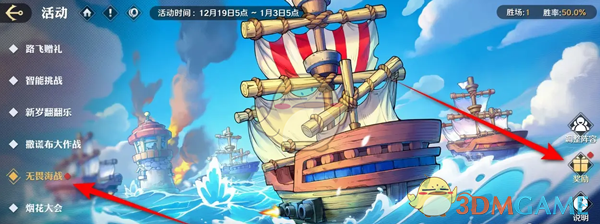 2、接着在活动玩法内找到无畏海战,然后点击右侧的奖励;