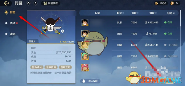 2、在同盟页面,点击同盟信息后,继续点击右下角的前往同盟按钮;