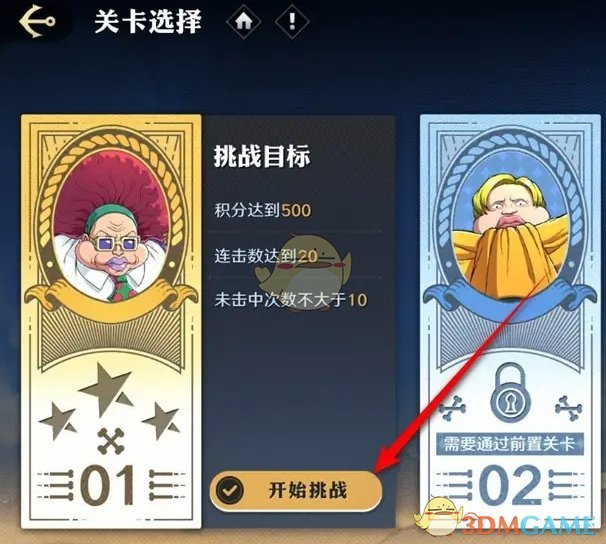 3、进入关卡选择页面,选择需要挑战的关卡点击开始挑战;