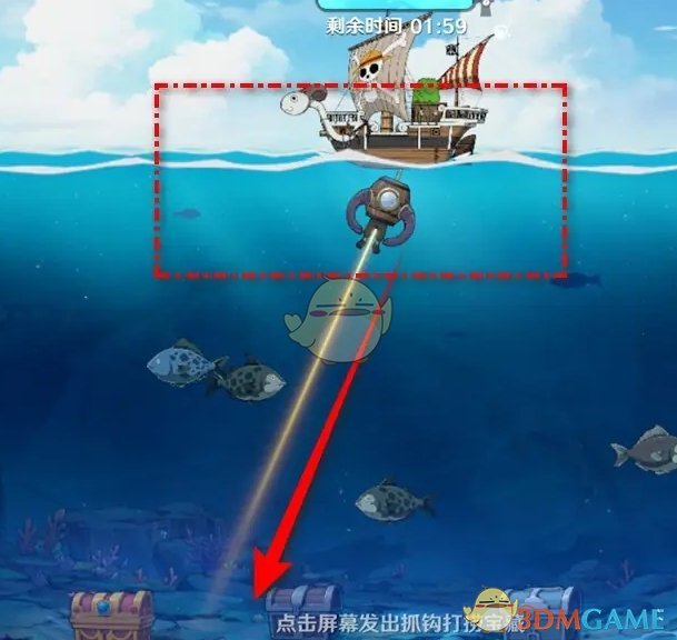 3、进入打捞可以看到计时,需要点击屏幕使用抓钩打捞宝藏;