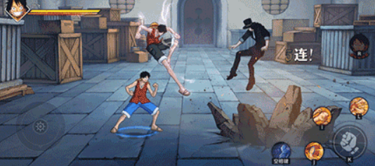 除此之外,二挡路飞的普攻连招也是非常具有打击感的。在常态下,路飞的普攻包括拳击、头槌、机关枪等动作,组合成一套流畅的连击。而在二挡状态下,攻击变得更为凶猛,第一段是Jet手枪的突刺,接着是多段高速踢击与挥拳,最后的火箭炮更是能造成极高的伤害。你可以通过快速连点普攻来不断输出,享受与敌人缠斗的快感。